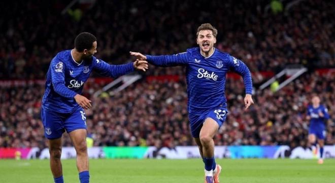 但让所有人都没有想到的是,本场率先取得进球的,却是人数上处于劣势的埃弗顿队。第28分钟,埃弗顿通过中路渗透制造杀机,弧顶位置的霍尔连续盘带突破,皮球中途虽然被曼联后卫破坏了一下,但眼疾脚快的霍尔稍作调整直接选择兜射,皮球划出一道美丽的弧线飞入网窝,少打一人的埃弗顿队爆冷取得了1-0的领先!